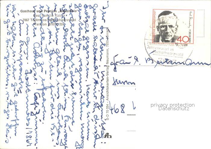 71982852 alte Postkarte Todtmoos Schwarzwald BW Gasthaus Pension Ratsstueble postalisch gelaufen Erhaltung siehe scans KatCode: 11110008337108