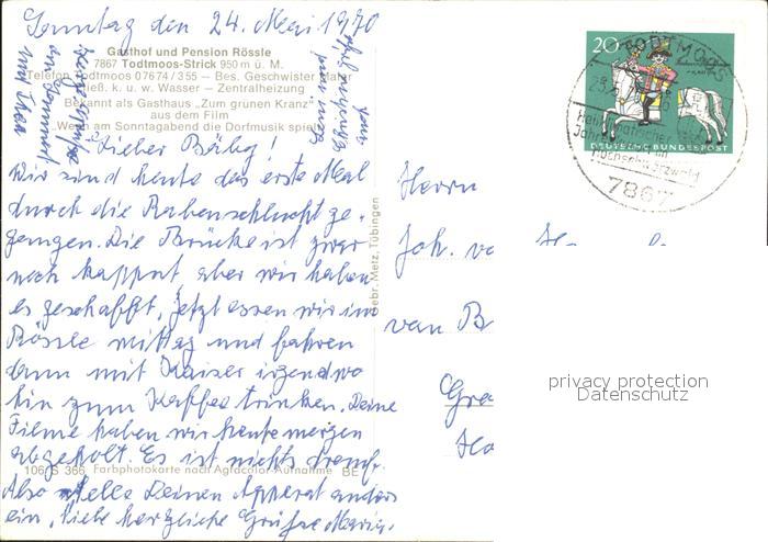 72314488 alte Postkarte Todtmoos Schwarzwald BW Gasthaus Pension Roessle postalisch gelaufen Erhaltung siehe scans KatCode: 11110008337108