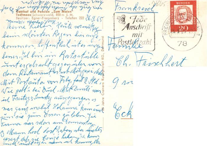 73935145 Todtmoos Schwarzwald BW Gasthaus Zum Maien Hans Thoma Stueble Speisezimmer Maiensepp Stueble postalisch gelaufen Erhaltung siehe scans [WerneD78] alte Postkarte Wern Katcode 11110008337108