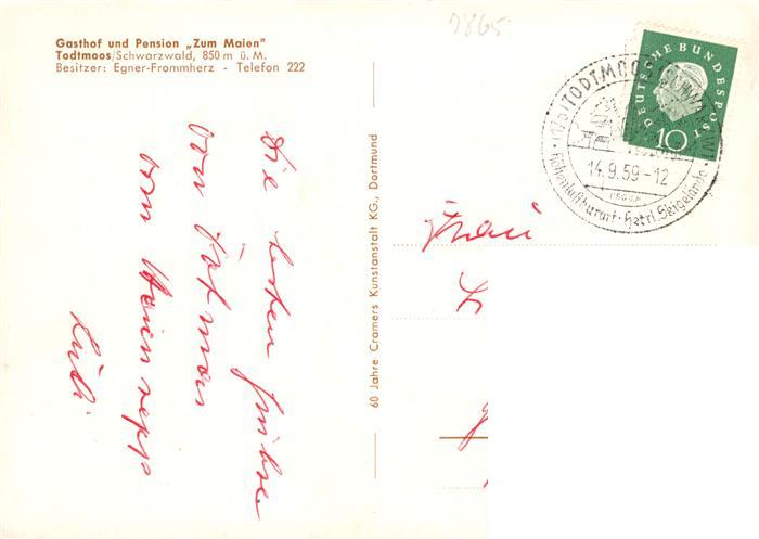 73935154 Todtmoos Schwarzwald BW Gasthaus zum Maien Hans Thoma Stueble Speisezimmer Maiensepp Stueble postalisch gelaufen Erhaltung siehe scans [WerneD78] alte Postkarte Wern Katcode 11110008337108