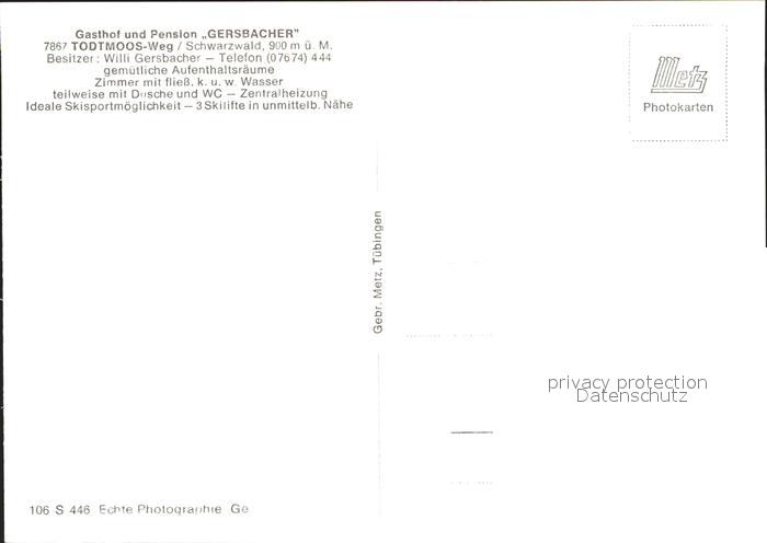 41784478 Todtmoos Schwarzwald BW Gasthof Gersbacher postalisch nicht gelaufen Erhaltung siehe scans Alte Ansichtskarte Postkarte Nata Katcode 11110008337108