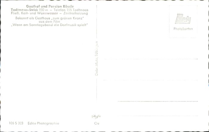 40771452 Todtmoos Schwarzwald BW Gasthof Pension Roessle postalisch nicht gelaufen Alte Ansichtskarte Postkarte Katcode 11110008337108