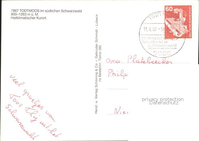 72376523 alte Postkarte Todtmoos Schwarzwald BW Heilklimatischer Kurort Schwarzwald Wallfahrtskirche Schwarzwaldhaus postalisch gelaufen Erhaltung siehe scans KatCode: 11110008337108