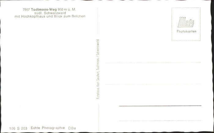40771367 Todtmoos Schwarzwald BW Hochkopfhaus Belchen postalisch nicht gelaufen Alte Ansichtskarte Postkarte Katcode 11110008337108