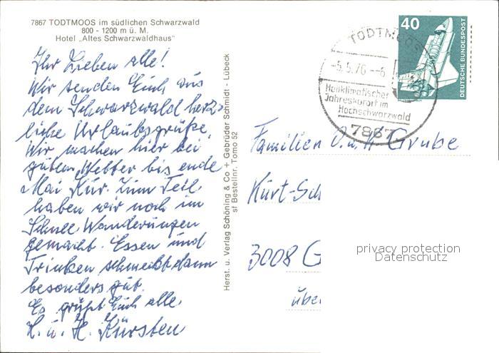 71991670 alte Postkarte Todtmoos Schwarzwald BW Hotel Altes Schwarzwaldhaus postalisch gelaufen Erhaltung siehe scans KatCode: 11110008337108