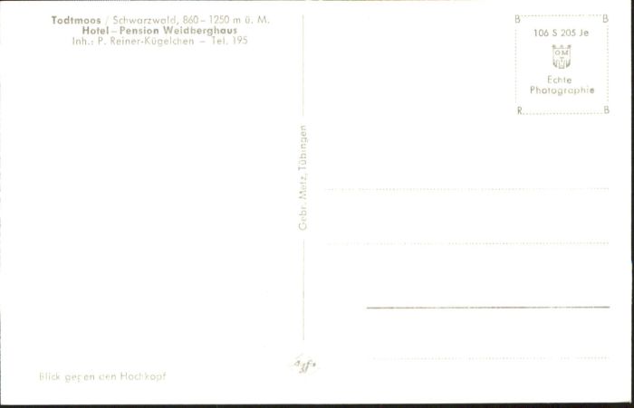 40771368 Todtmoos Schwarzwald BW Hotel Pension Weidberghaus postalisch nicht gelaufen Alte Ansichtskarte Postkarte Katcode 11110008337108