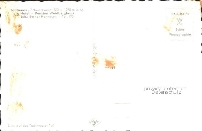 41783952 Todtmoos Schwarzwald BW Hotel Pension Weidberghaus Terrasse postalisch nicht gelaufen Erhaltung siehe scans Alte Ansichtskarte Postkarte Nata Katcode 11110008337108