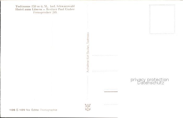 41815637 Todtmoos Schwarzwald BW Hotel zum Loewen Schwarzwald postalisch nicht gelaufen Erhaltung siehe scans Alte Ansichtskarte Postkarte hz_F Katcode 11110008337108
