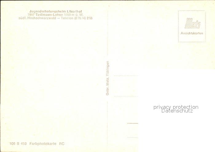 72060128 Todtmoos Schwarzwald BW Jugenderholungsheim Liborlhof postalisch nicht gelaufen Erhaltung siehe scans KatCode: 11110008337108