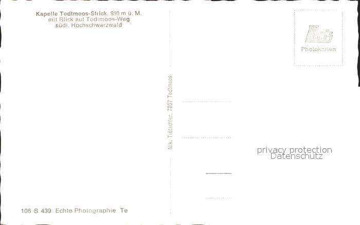 41783975 Todtmoos Schwarzwald BW Kapelle Strick postalisch nicht gelaufen Erhaltung siehe scans Alte Ansichtskarte Postkarte Nata Katcode 11110008337108