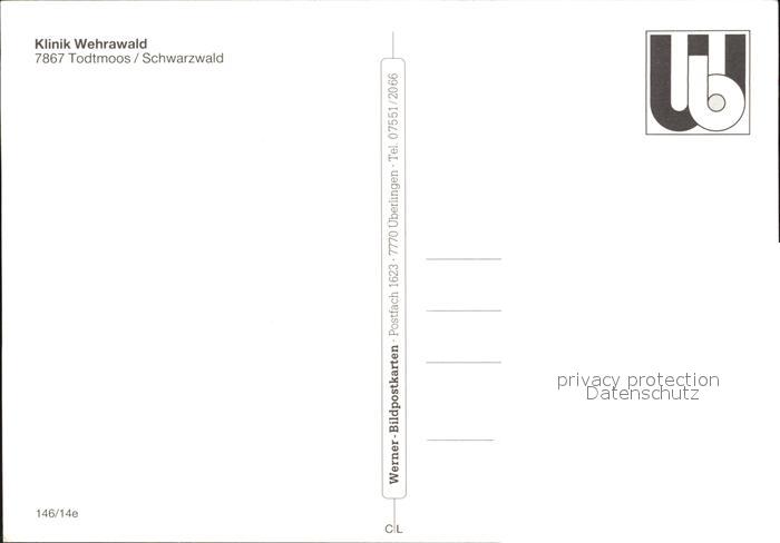 72465163 Todtmoos Schwarzwald BW Klinik Wehrawald postalisch nicht gelaufen Erhaltung siehe scans KatCode: 11110008337108