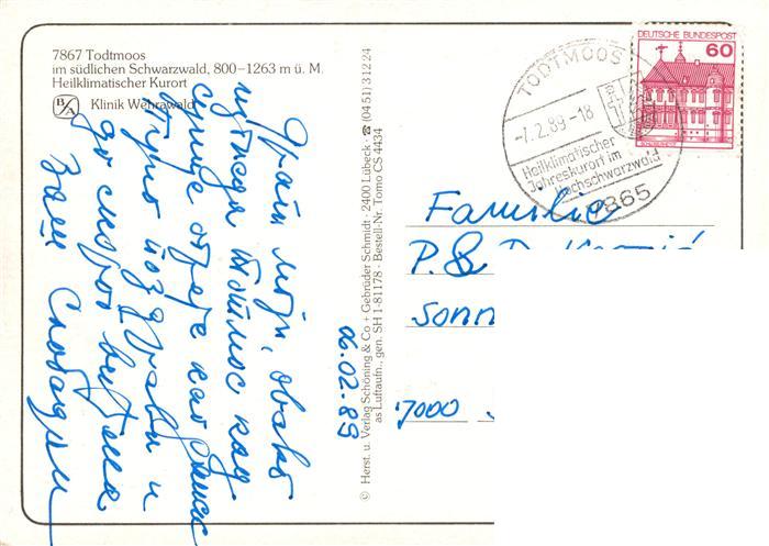 73935175 Todtmoos Schwarzwald BW Klinik Wehrawald der BfA Fliegeraufnahme postalisch gelaufen Erhaltung siehe scans [WerneD78] alte Postkarte Wern Katcode 11110008337108