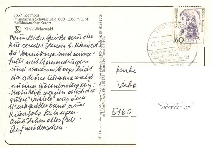 73718216 Todtmoos Schwarzwald BW Klinik Wehrawald Fliegeraufnahme postalisch gelaufen Erhaltung siehe scans [WerneD78] alte Postkarte Wern Katcode 11110008337108