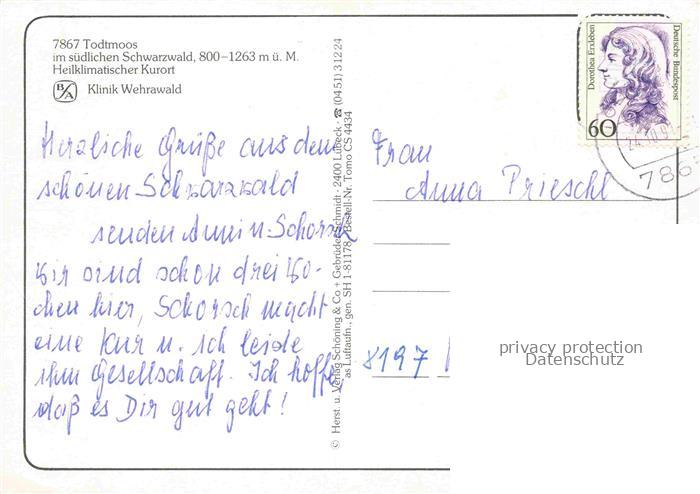 Todtmoos Schwarzwald BW Klinik Wehrawald Fliegeraufnahme postalisch gelaufen Erhaltung siehe scans [WerneD78] alte Postkarte Wern Katcode 11110008337108