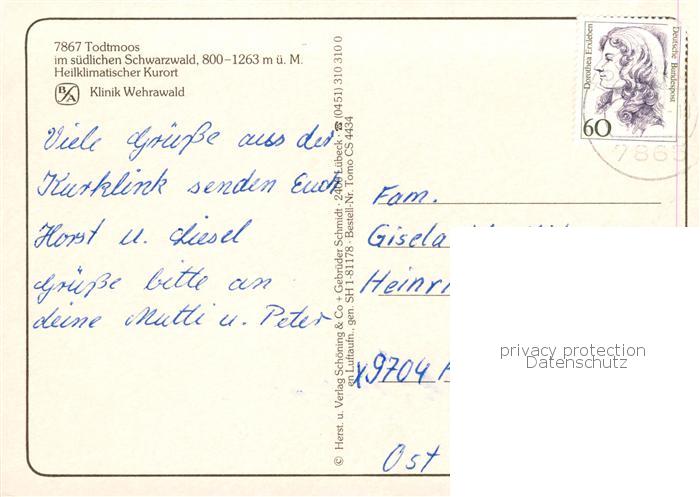 73789098 Todtmoos Schwarzwald BW Klinik Wehrawald Fliegeraufnahme postalisch gelaufen Erhaltung siehe scans [WerneD78] alte Postkarte Wern Katcode 11110008337108