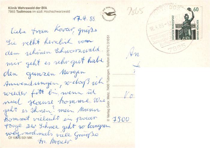 73927860 Todtmoos Schwarzwald BW Klinik Wehrawald Treppe Gastraeume Hallenbad postalisch gelaufen Erhaltung siehe scans [WerneD78] alte Postkarte Wern Katcode 11110008337108