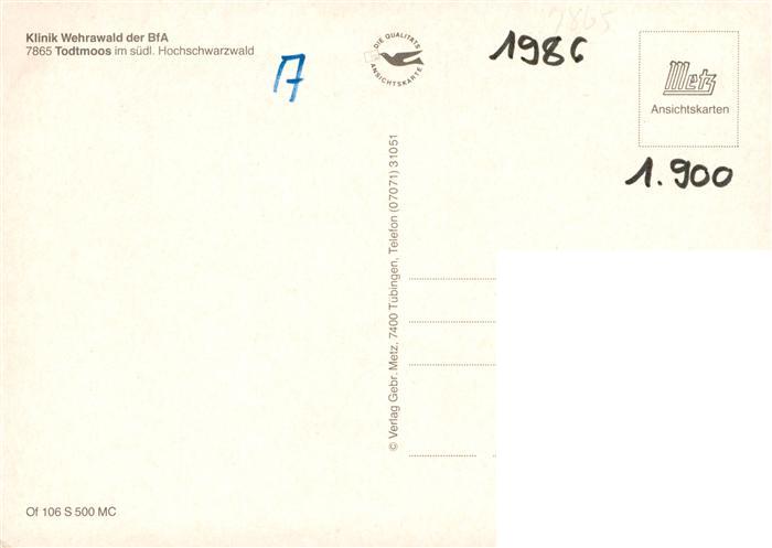 73935193 Todtmoos Schwarzwald BW Klinik Wehrawald postalisch nicht gelaufen Erhaltung siehe scans [WerneD78] Wern Katcode 11110008337108