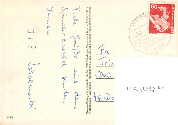73813153 Todtmoos Schwarzwald BW Kuranlagen Park Panorama Schwimmbad postalisch gelaufen Erhaltung siehe scans [WerneD78] alte Postkarte Wern Katcode 11110008337108