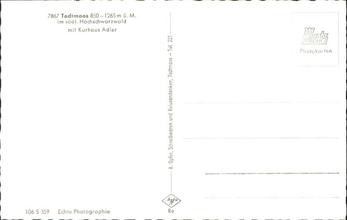 40771465 Todtmoos Schwarzwald BW Kurhaus Adler postalisch nicht gelaufen Alte Ansichtskarte Postkarte Katcode 11110008337108