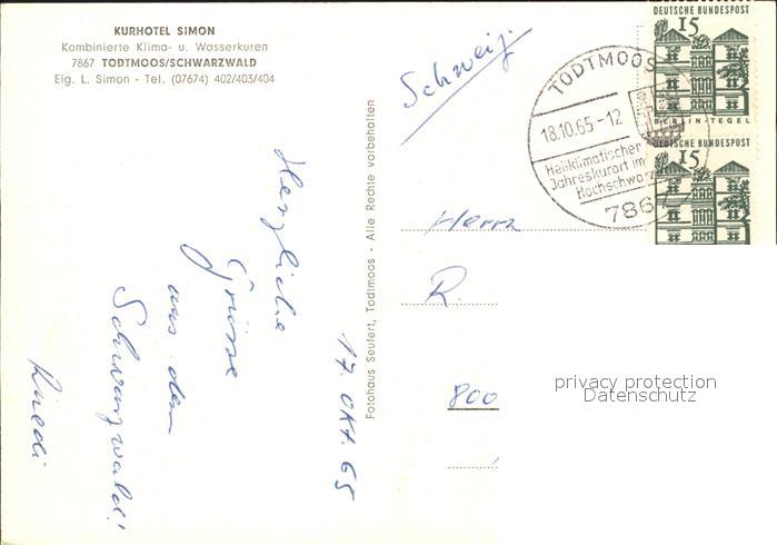 71830259 alte Postkarte Todtmoos Schwarzwald BW Kurhotel Simon postalisch gelaufen Erhaltung siehe scans KatCode: 11110008337108