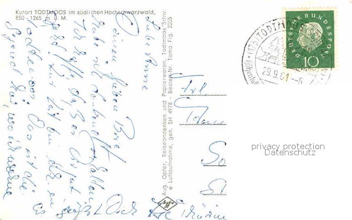 72642984 alte Postkarte Todtmoos Schwarzwald BW Kurort Schwarzwald Fliegeraufnahme postalisch gelaufen Erhaltung siehe scans [FriedD77] KatCode: 11110008337108