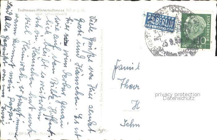 72193479 alte Postkarte Todtmoos Schwarzwald BW mit Hintertodtmoos postalisch gelaufen Erhaltung siehe scans KatCode: 11110008337108