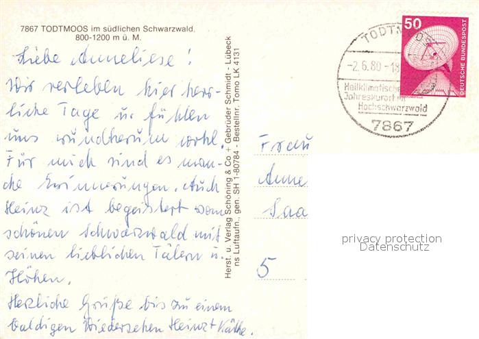 72701279 alte Postkarte Todtmoos Schwarzwald BW Panorama Hochkopf Luftaufnahme postalisch gelaufen Erhaltung siehe scans [KathaD79] KatCode: 11110008337108