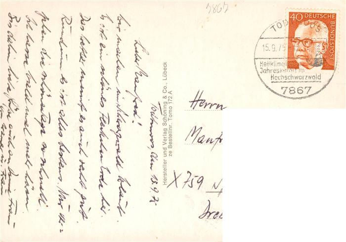 73927417 Todtmoos Schwarzwald BW Panorama Kirche Hochkopfturm Schwimmbad postalisch gelaufen Erhaltung siehe scans [WerneD78] alte Postkarte Wern Katcode 11110008337108