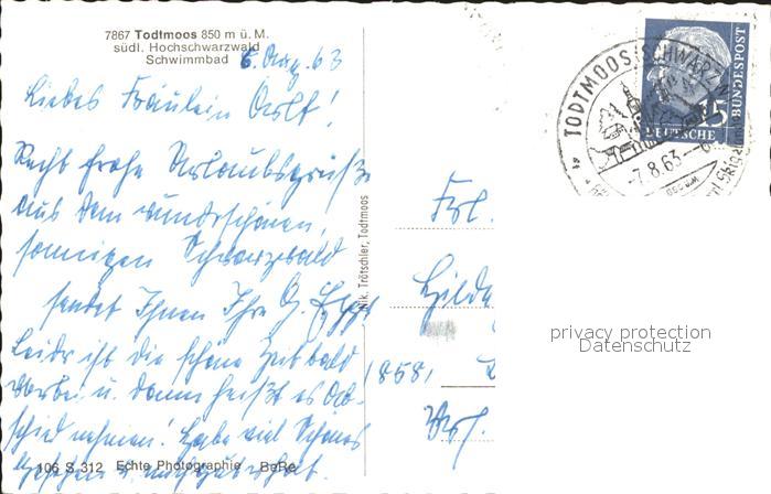 71928242 alte Postkarte Todtmoos Schwarzwald BW Panorama Schwimmbad postalisch gelaufen Erhaltung siehe scans KatCode: 11110008337108