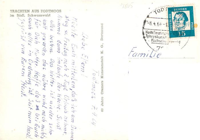 73927431 Todtmoos Schwarzwald BW Panorama Trachten postalisch gelaufen Erhaltung siehe scans [WerneD78] alte Postkarte Wern Katcode 11110008337108