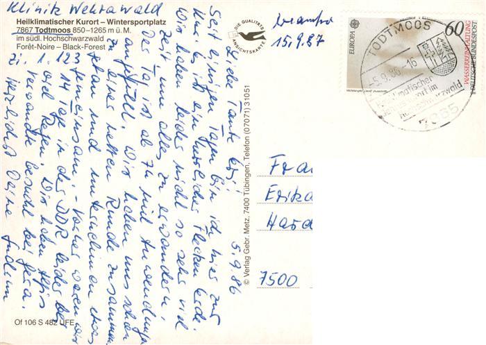 73927427 Todtmoos Schwarzwald BW Panorama Weg Todtmoos Hintertodtmoos postalisch gelaufen Erhaltung siehe scans [WerneD78] alte Postkarte Wern Katcode 11110008337108