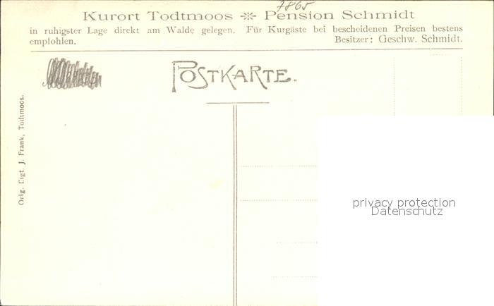 32180631 Todtmoos Schwarzwald BW Pension Schmidt postalisch nicht gelaufen Erhaltung siehe scans KatCode: 11110008337108