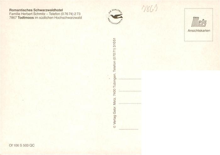 73927811 Todtmoos Schwarzwald BW Romantisches Schwarzwaldhotel Gastraeume Zimmer Panorama postalisch nicht gelaufen Erhaltung siehe scans [WerneD78] Wern Katcode 11110008337108