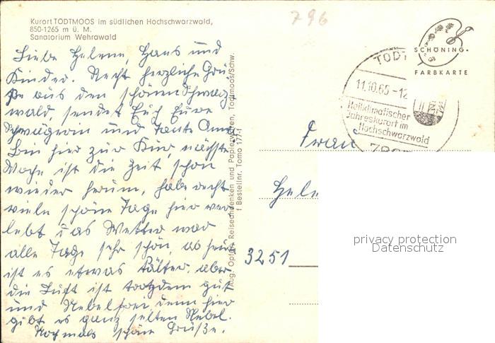 72613692 alte Postkarte Todtmoos Schwarzwald BW Sanatorium Wehrabad postalisch gelaufen Erhaltung siehe scans [WerneD78] KatCode: 11110008337108