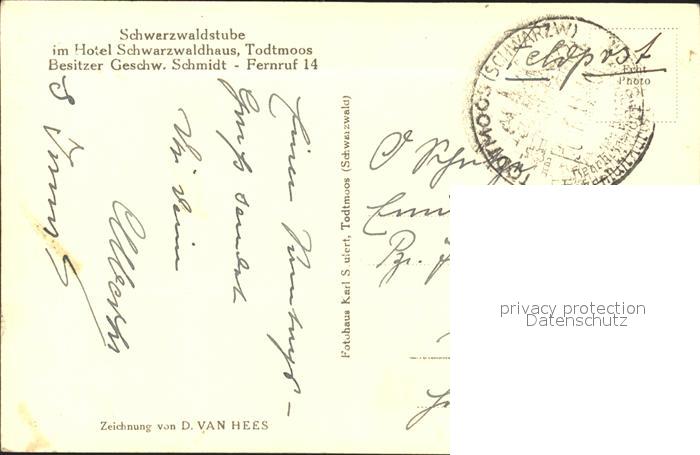 41687888 Todtmoos Schwarzwald BW Schwarzwaldstube Hotel Schwarzwaldhaus postalisch gelaufen Feldpost Erhaltung siehe scans Feldpost alte Postkarte Nata Katcode 11110008337108