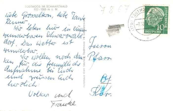 73913777 Todtmoos Schwarzwald BW Teilansicht postalisch gelaufen Erhaltung siehe scans [WerneD78] alte Postkarte Wern Katcode 11110008337108