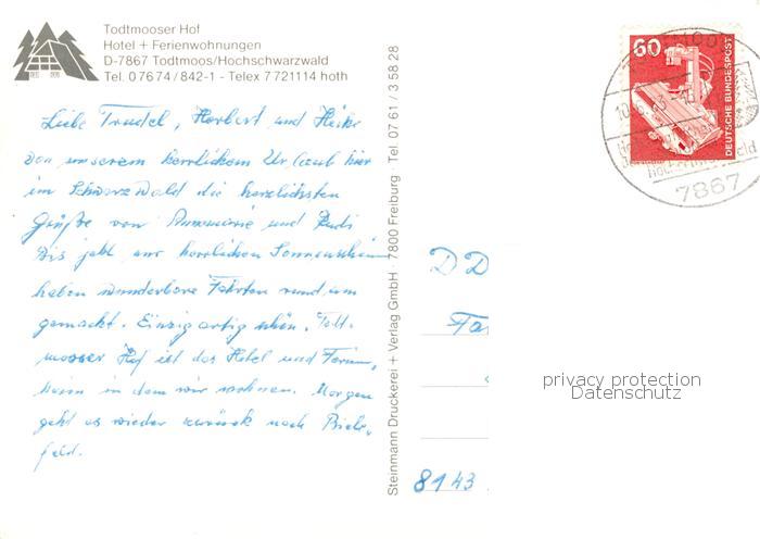 73788203 Todtmoos Schwarzwald BW Todtmooser Hof Hotel Ferienwohnungen Panorama Schwarzwald postalisch gelaufen Erhaltung siehe scans [FriedD77] alte Postkarte Frie Katcode 11110008337108