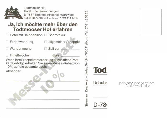 72798919 Todtmoos Schwarzwald BW Todtmooser Hof postalisch nicht gelaufen Erhaltung siehe scans [PaolaD17] KatCode: 11110008337108