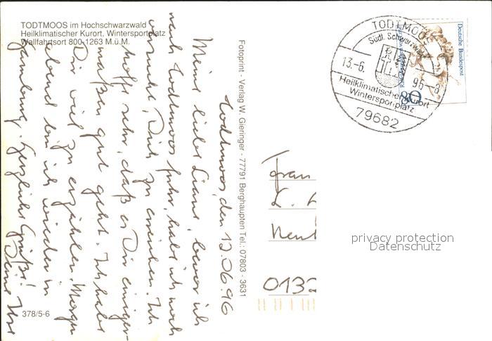 72370156 alte Postkarte Todtmoos Schwarzwald BW Wallfahrtsort postalisch gelaufen Erhaltung siehe scans KatCode: 11110008337108