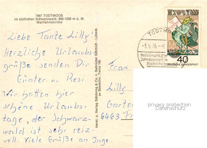 73271265 alte Postkarte Todtmoos Wallfahrtskirche postalisch gelaufen Erhaltung siehe scans [KathaD81] KatCode: 11110008337108