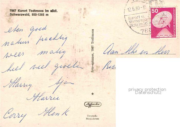 72883505 alte Postkarte Todtmoos postalisch gelaufen Erhaltung siehe scans [LiesaD40] KatCode: 11110008337108