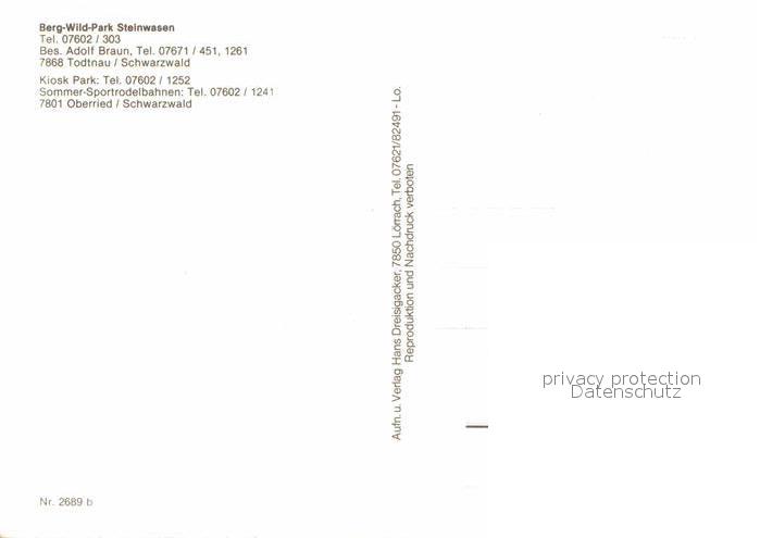 72690680 Todtnau Bergwildpark Steinwasen postalisch nicht gelaufen Erhaltung siehe scans [NatalD47] KatCode: 11110008336087
