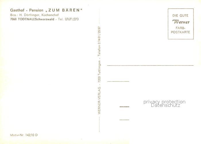 73543565 Todtnau Gasthof Pension Zum Baeren postalisch nicht gelaufen Erhaltung siehe scans [WerneD78] KatCode: 11110008336087