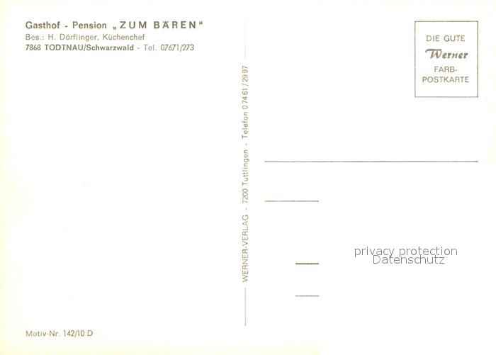 73541322 Todtnau Gasthof Pension Zum Baeren postalisch nicht gelaufen Erhaltung siehe scans [KathaD81] KatCode: 11110008336087