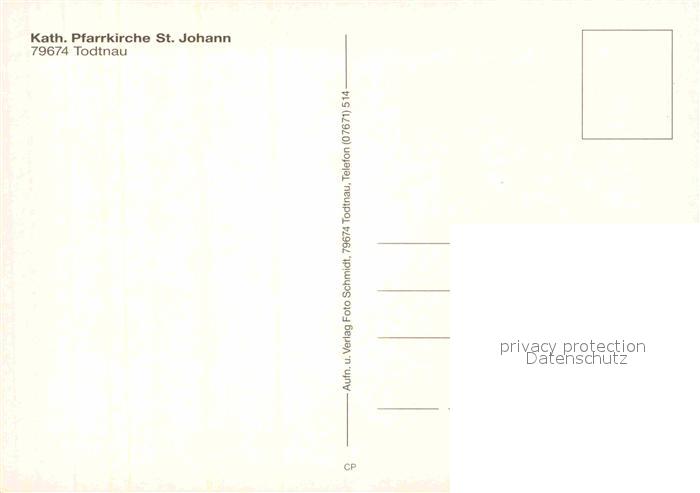 72739812 Todtnau Pfarrkirche St. Johann postalisch nicht gelaufen Erhaltung siehe scans [LiesaD40] KatCode: 11110008336087