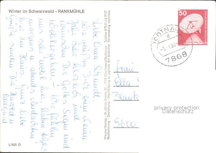 72922750 alte Postkarte Todtnau Rankmuehle postalisch gelaufen Erhaltung siehe scans [LiesaD40] KatCode: 11110008336087