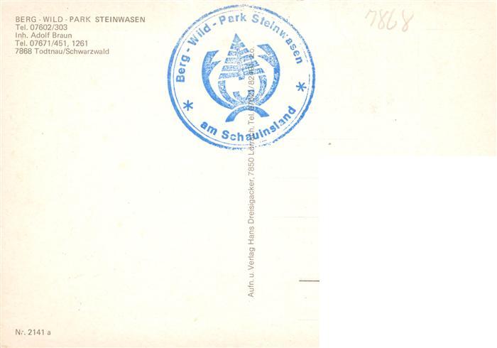 73927882 Todtnau Schwarzwald BW Berg Wild Park Steinwasen postalisch nicht gelaufen Erhaltung siehe scans [WerneD78] Wern Katcode 11110008336087