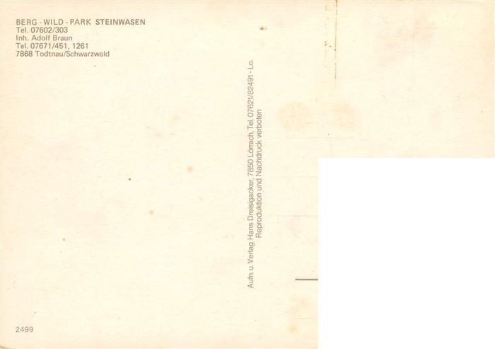 73935015 Todtnau Schwarzwald BW Berg Wild Park Steinwasen postalisch nicht gelaufen Erhaltung siehe scans [WerneD78] Wern Katcode 11110008336087