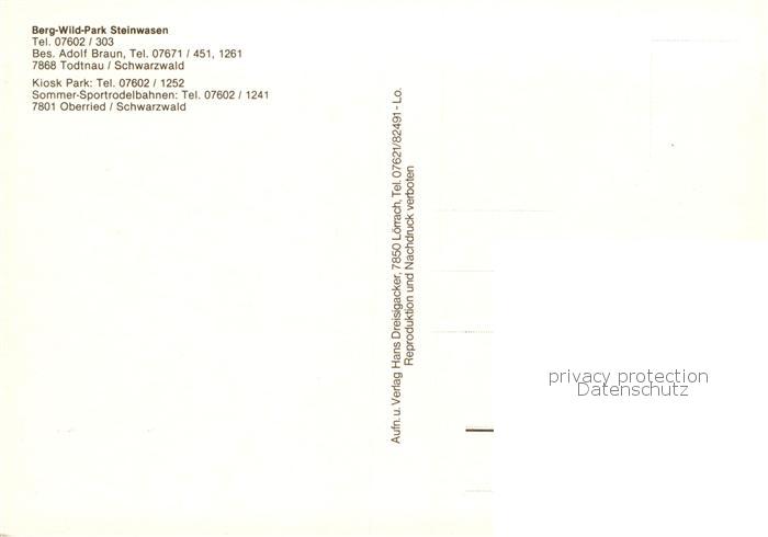 73838058 Todtnau Schwarzwald BW Bergwildpark Steinwasen Schwarzwald postalisch nicht gelaufen Erhaltung siehe scans [FriedD77] Frie Katcode 11110008336087