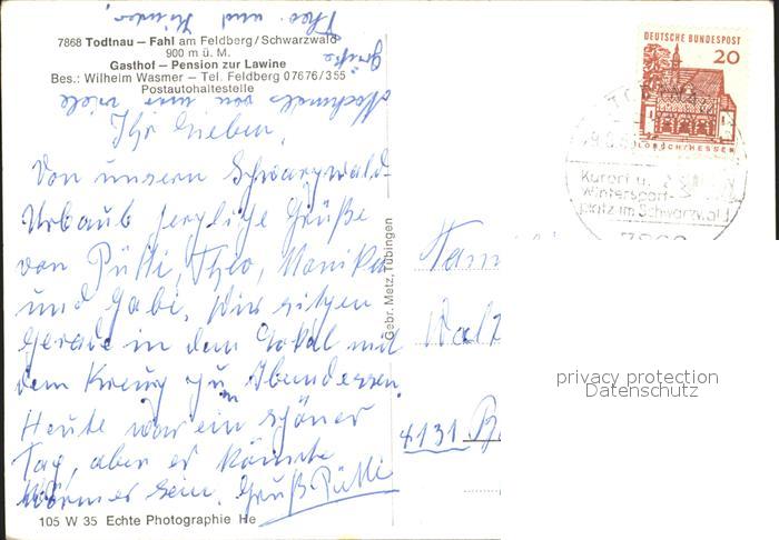 72191683 alte Postkarte Todtnau Schwarzwald BW Fahl am Feldberg Gasthaus Pension zur Lawine postalisch gelaufen Erhaltung siehe scans KatCode: 11110008336087